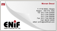 Specifications: 2 color job with Offset Printing. Designed in: Aug 2004 Enif Paper Products Pvt. Ltd. |