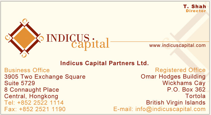 The design highlights the company's Logo as a watermark. Specifications: 2 color job with Offset Printing. Designed in: Jul 2004 Indicus Capital |