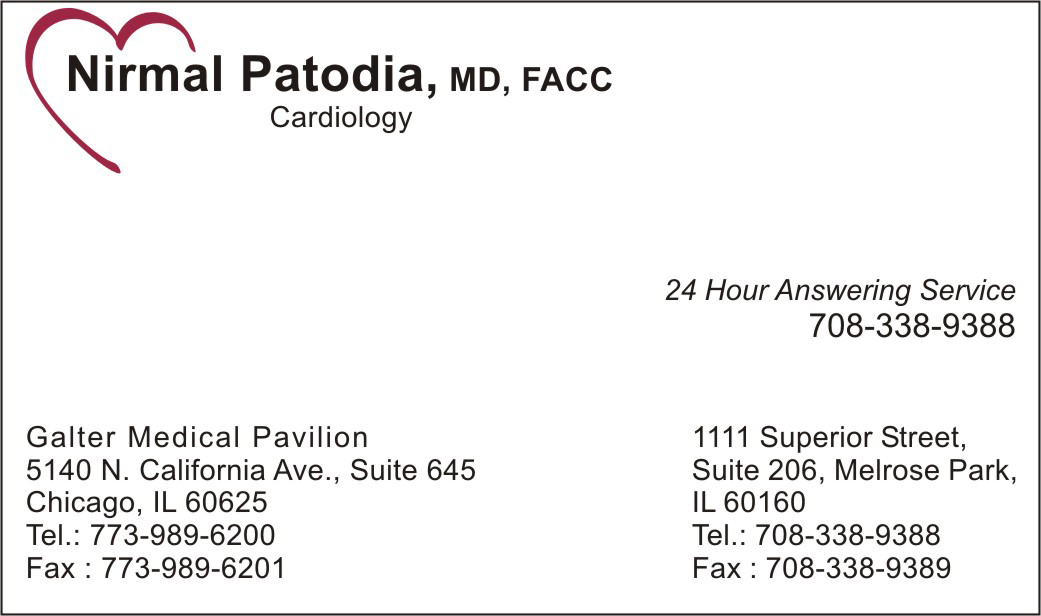 Specifications: 2 color job with Offset Printing. Designed in: Dec 2003 Dr. Nirmal Patodia, Cardiologist |