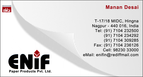 Specifications: 2 color job with Offset Printing. Designed in: Aug 2004 Enif Paper Products Pvt. Ltd. |